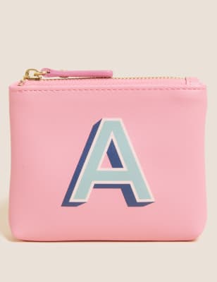 Personalise your accessories collection with this coin purse, featuring a contrasting alphabet initial. Fastens with a secure zip closure. Available in letters; A, C, E, J, L, M, P & S. Each letter comes in a different on-trend colour, please check the images to see which colour you will receive.