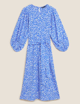 When you want a statement look, reach for this midi column dress. It's cut in a regular fit from striking animal print fabric. Voluminous 3/4 sleeves and a wide skirt create a stand-out shape, which is cinched in at the waist with the self-tie belt. n M&S Collection: easy-to-wear wardrobe staples that combine classic and contemporary styles.