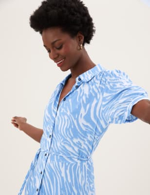 Create a striking look with this animal print shirt dress. This midaxi style has a regular fit with a flattering tie waist and a single tier in the skirt for added flair. A button-down front and collared neck create a neat finish. Made with sustainably sourced viscose.n M&S Collection: easy-to-wear wardrobe staples that combine classic and contemporary styles.