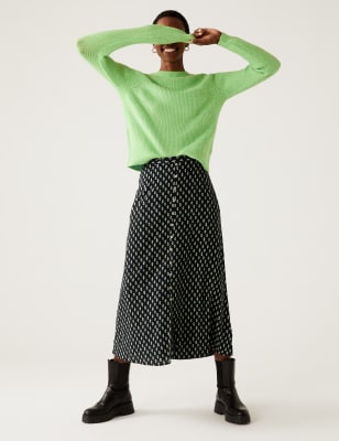 Womens M&S Collection Bequemer Rippenpullover mit Rundhalsausschnitt - Lime, Lime