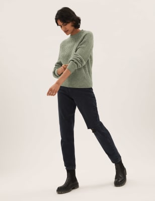 Stay cosy in this classic ribbed jumper. Cut to a comfortable relaxed fit, with a cuffed hem and long sleeve to keep you warm. Complete with a simple crew neckline. Made with recycled polyester. M&S Collection: easy-to-wear wardrobe staples that combine classic and contemporary styles.