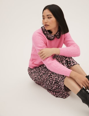 Stay cosy in this classic ribbed jumper. Cut to a comfortable relaxed fit, with a cuffed hem and long sleeve to keep you warm. Complete with a simple crew neckline. Made with recycled polyester. M&S Collection: easy-to-wear wardrobe staples that combine classic and contemporary styles.