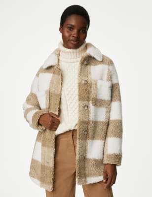 Crafted from borg fleece, this snug checked shacket will be your ultimate go-to on chilly weekends. It's made in a comfy relaxed fit, perfect for layering over jumpers. Authentic mock-horn button fasten up to a neat collared neckline. A curved hemline brings flattering shaping, while two patch pockets on the chest add a laid-back, utilitarian feel.n M&S Collection: easy-to-wear wardrobe staples that combine classic and contemporary styles.