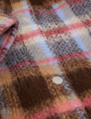 Womens M&S Collection Brushed Checked Collared Shacket with Wool - Raisin, Raisin