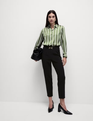 Add a contemporary touch to your smart ensembles with these straight-leg trousers. They sit high on the waist for a flattering silhouette and feature stylish buckle detailing on the waistband. A concealed zip fastening ensures a neat finish. n n M&S Collection: easy-to-wear wardrobe staples that combine classic and contemporary styles.