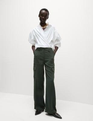 Womens M&S Collection Cargo Wide Leg Trousers, Dark Green