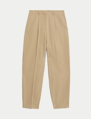 Womens M&S Collection Cotton Blend Pleated Chinos - Stone, Stone