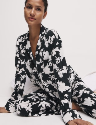 These pyjamas are crafted from breathable modal-blend fabric with luxurious Supima® cotton. Two-piece set, made to an easy regular fit. Long-sleeved top with a smart revere collar and a button-through fastening. Full-length bottoms feature aa elasticated waist. Both pieces have a seasonal print and are made with moisture-wicking fabric for extra comfort. n n M&S Collection: versatile styles in modern shapes with unique and playful details.