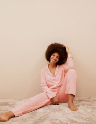 Womens M&S Collection Cotton Modal Rever Collar Pyjama Set - Soft Pink, Soft Pink