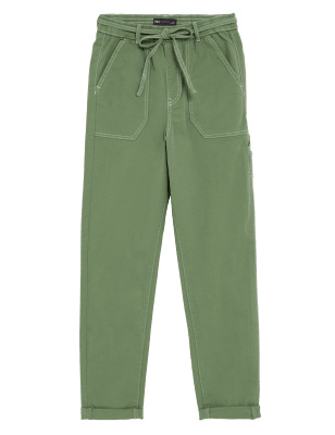 These cotton-rich joggers are perfect for laid-back days. Slim fit design in an ankle-grazer length for a flattering silhouette. Comfortable high elasticated waist with a handy detachable fabric belt. Comes complete with front and back pockets, belt loops and contrast stitching for a utility look.n M&S Collection: easy-to-wear wardrobe staples that combine classic and contemporary styles.