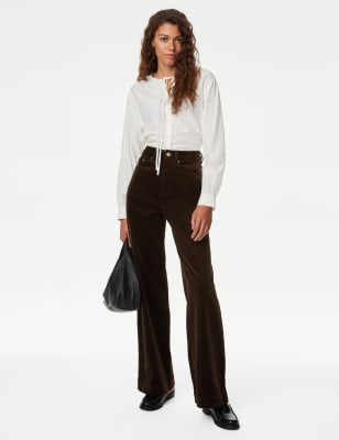 These cotton-rich corduroy trousers will make a timeless and versatile addition to your wardrobe. Wide-leg design, with a flattering high waistband that fastens with a zip and button. Belt loops and pockets give the style a practical finish.n M&S Collection: easy-to-wear wardrobe staples that combine classic and contemporary styles.