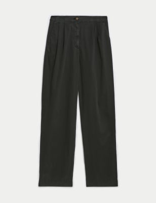 Womens M&S Collection Cotton Rich Pleat Front Straight Leg Chinos - Black, Black