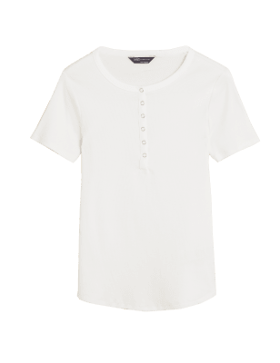 Ribbed cotton-rich fabric gives this Henley top a cosy feel. Regular fit, with breezy short sleeves and a popper placket from the crew neck for ease. We only ever use responsibly sourced cotton for our clothes.n M&S Collection: easy-to-wear wardrobe staples that combine classic and contemporary styles.