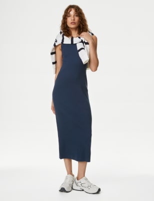 Womens M&S Collection Cotton Rich Ribbed Midi Bodycon Dress - Navy, Navy