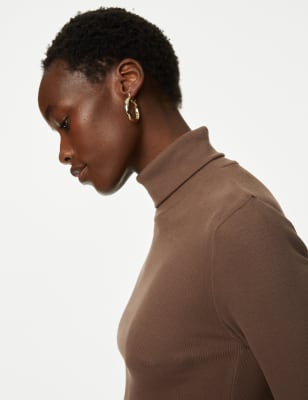 Cover the basics in style with this cotton-rich top. Slim fit design, with long sleeves and a cosy roll neck. All-over ribbed finish for a textural touch. M&S Collection: easy-to-wear wardrobe staples that combine classic and contemporary styles.