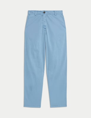 These cotton-rich chinos are an easy choice for workdays and weekends alike. They're cut with a straight leg that finishes at an ankle-grazing length for a contemporary look. Added stretch in the fabric and a mid-rise waistband with a button-and-zip fastening ensure all-day comfort. They're garment-dyed for a casual appearance and feature two handy side pockets.n n M&S Collection: easy-to-wear wardrobe staples that combine classic and contemporary styles.