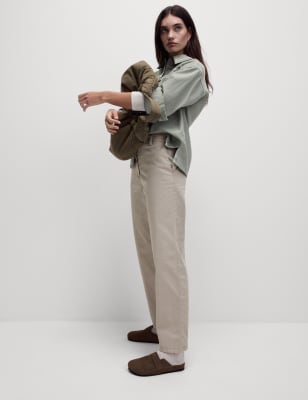 These cotton-rich chinos are an easy choice for workdays and weekends alike. They're cut with a straight leg that finishes at an ankle-grazing length for a contemporary look. Added stretch in the fabric and a mid-rise waistband with a button-and-zip fastening ensure all-day comfort. They're garment-dyed for a casual appearance and feature two handy side pockets.n n M&S Collection: easy-to-wear wardrobe staples that combine classic and contemporary styles.