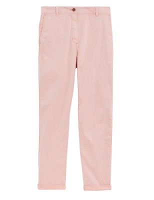 These cotton-rich chinos are tea dyed with natural colourants for a lower environmental impact. Modern slim fit, with an ankle-grazing length and casual rolled hems. Flattering high-rise waist with belt loops and a button and zip fastening. Practical front and back pockets. Plus, the fabric features added stretch for day-long comfort. n M&S Collection: easy-to-wear wardrobe staples that combine classic and contemporary styles.