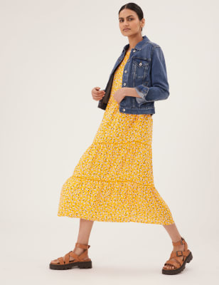 Womens M&S Collection Ditsy Floral Midaxi Tiered Dress - Yellow Mix, Yellow Mix