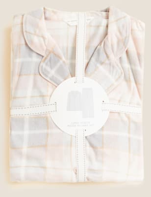 This stylish checked pyjama set is crafted from snug fleece fabric for a super cosy feel. Made in our regular fit, this two-piece set comprises a contemporary revere top with insulating long sleeves and comfy elasticated bottoms. n M&S Collection: versatile styles in modern shapes with unique and playful details.