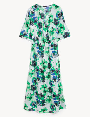 There's a light and floaty feel to our floral print midi dress. It's cut to a regular fit and has gathers at the waist for a classic silhouette. The elegant v-neck is complemented by loose short sleeves.n M&S Collection: easy-to-wear wardrobe staples that combine classic and contemporary styles.