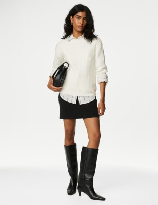 With its rib-knit design, this jumper will add a layer of cosy texture to your looks. It's made to a comfortable regular fit, with a neat crew neck and contrast rib trims. The dropped shoulders create a laidback feel.n M&S Collection: easy-to-wear wardrobe staples that combine classic and contemporary styles.