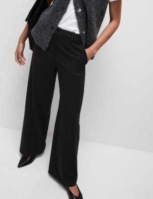 These woven trousers are a versatile addition to your smart wardrobe. Wide-leg cut, with a high waist and front creases for a flattering look. They're made with added stretch for comfort and feature a hook bar and zip fastening. Complete with angled side pockets.nnM&S Collection: easy-to-wear wardrobe staples that combine classic and contemporary styles.