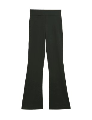 Transition seamlessly from busy days to cosy evenings with these jersey trousers. Regular fit, with an elasticated high waist and added stretch for comfort. Flared legs create a statement silhouette. n M&S Collection: easy-to-wear wardrobe staples that combine classic and contemporary styles.