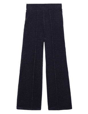 Featuring an understated sparkle, these jersey trousers are perfect for cocktail hour. They're designed in a regular fit, with a comfortable elasticated high waist and a flattering wide leg. This easy pull-on style is finished with a front seam detail for a smart look. n M&S Collection: easy-to-wear wardrobe staples that combine classic and contemporary styles.