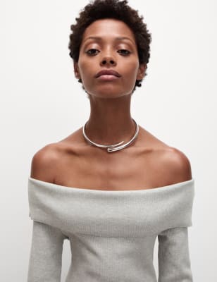 This jersey bandeau dress is a versatile piece that can be styled for both casual and more formal occasions. It's cut in a flattering fitted design, with a trendy off-the-shoulder neckline and a midi-length hem. Added stretch in the fabric gives easy movement. The long sleeves are finished with neat ribbed trims.n n M&S Collection: easy-to-wear wardrobe staples that combine classic and contemporary styles.