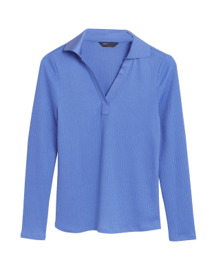 When you need a smart layer, reach for this jersey top. It's cut in a regular fit from ribbed fabric with added stretch for comfort. Long sleeves and a revere collar offer a tidy finish. n M&S Collection: easy-to-wear wardrobe staples that combine classic and contemporary styles.