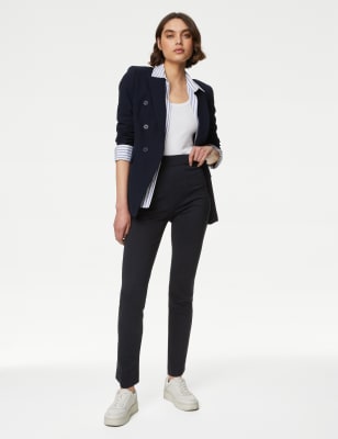These leg-lengthening jersey trousers combine comfort and style. Pull-on design, cut in a sharp slim fit with an ankle grazer length. Added stretch and an elasticated high waist give a flexible feel, while front and back darts create flattering shaping. M&S Collection: easy-to-wear wardrobe staples that combine classic and contemporary styles.
