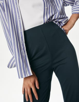 For laid-back days, these understated trousers are a comfortable choice. They're made from breathable jersey material in a modern straight-leg fit, and feature an elasticated high waist to give easy wear. Added stretch in the fabric provides a flexible feel.n n M&S Collection: easy-to-wear wardrobe staples that combine classic and contemporary styles.