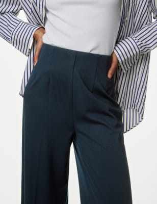 These refined trousers are made from breathable jersey fabric with added stretch for easy movement. Flattering wide-leg fit, featuring a comfy high elasticated waist. A centre seam down each leg adds a smart touch.n n M&S Collection: easy-to-wear wardrobe staples that combine classic and contemporary styles.