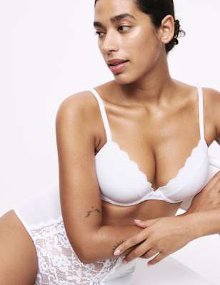 Womens M&S Collection Lace Padded Plunge Wired Bra A-E - White, White