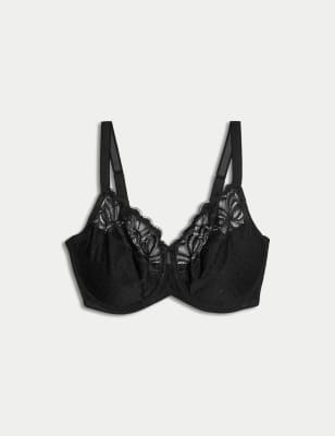This underwired bra combines beautiful floral lace with minimising support. It's designed to reduce your size by up to one cup. A spot-textured fabric lends a playful touch to the design. n n M&S Collection: versatile styles in modern shapes with unique and playful details.