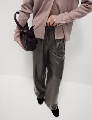 These faux leather trousers instantly glam up your outfits. They have a flattering wide-leg shape and an elasticated waist that makes them easy to pull on. Two pockets offer a practical touch. n n M&S Collection: easy-to-wear wardrobe staples that combine classic and contemporary styles.