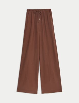 These linen-rich trousers are designed in a breezy wide-leg shape, making them perfect for warm-weather days. They fasten with a drawstring at the comfortable high rise waist. Handy side pockets and patch pockets at the back complete this practical pair. n M&S Collection: easy-to-wear wardrobe staples that combine classic and contemporary styles.