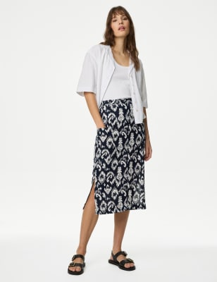 This linen-rich utility skirt is a versatile piece to add to your warm-weather wardrobe. It's made with an elasticated waistband for comfort and an elegant midi-length hem. Two pockets at the front provide room for your essentials. n M&S Collection: easy-to-wear wardrobe staples that combine classic and contemporary styles.