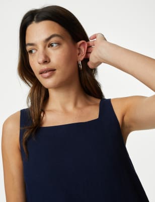 Stay stylishly cool on warm days with this linen-rich shift dress. This sleeveless piece is made to an easy regular fit, with a breezy square neckline and slim shoulder straps. The dress falls to a flattering mini length. nM&S Collection: easy-to-wear wardrobe staples that combine classic and contemporary styles.