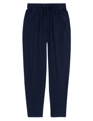 Easy to dress up or down, these linen-rich trousers are bound to become one of your go-to pieces. Designed with a flattering tapered leg and an on-trend ankle length. The mid-rise waistband is elasticated at the back and sides for comfort, and features an adjustable drawcord. Handy front and back pockets.n M&S Collection: easy-to-wear wardrobe staples that combine classic and contemporary styles.