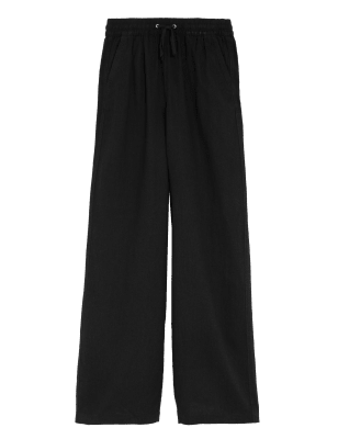 Blend effortless style with ultimate comfort in these linen-rich trousers. The wide-legged design features an elasticated mid-rise waist with an adjustable drawcord fastening. Handy pockets at the back and sides complete the versatile look.n M&S Collection: easy-to-wear wardrobe staples that combine classic and contemporary styles.