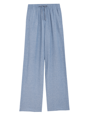 Blend effortless style with ultimate comfort in these linen-rich trousers. The wide-legged design features an elasticated mid-rise waist with an adjustable drawcord fastening. Handy pockets at the back and sides complete the versatile look.n M&S Collection: easy-to-wear wardrobe staples that combine classic and contemporary styles.