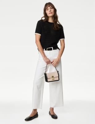 These lyocell™ blend ankle-grazing jeans are designed to flatter your figure. They come with a high waist and on-trend wide leg along with contemporary raw hems. The denim is soft and stretchy for ultimate comfort. A button and zip fastening, belt loops and five pockets make for a classic finish.n M&S Collection: easy-to-wear wardrobe staples that combine classic and contemporary styles.