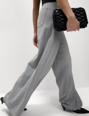 Womens M&S Collection Lyocell™ Blend Wide Palazzo Leg Jeans - Grey, Grey