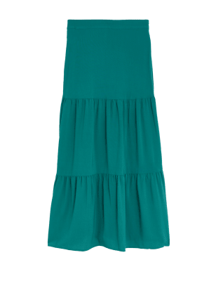 Slip into this maxi skirt to complete a sophisticated ensemble. It comes in a regular fit, with tiers through the skirt for subtle shaping. A zip fastening at the waist offers a neat finish. Made with responsibly sourced viscose.n M&S Collection: easy-to-wear wardrobe staples that combine classic and contemporary styles.