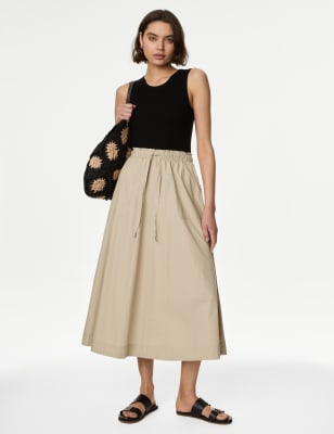 This pure cotton circle skirt has a cool, utility vibe. It's designed with an adjustable drawstring at the waist. A midi-length hem ensures an elegant look and the easy pockets provide a functional finish.n M&S Collection: easy-to-wear wardrobe staples that combine classic and contemporary styles.