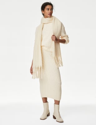 For a cosy feel on chilly days, opt for this snuggly knitted skirt. It's designed in a regular fit for comfortable wear and falls to a flattering midi length. The waistband is elasticated to make this piece easy to slip on. A mix of chunky and narrow cable knits adds traditional texture. n M&S Collection: easy-to-wear wardrobe staples that combine classic and contemporary styles.