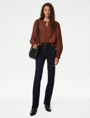 This modal-rich blouse features a pretty ribbon tie at the neck. Regular fit, with warm long sleeves that finish in ruffled cuffs.n M&S Collection: easy-to-wear wardrobe staples that combine classic and contemporary styles.