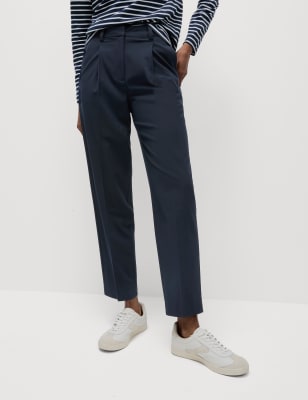 Womens M&S Collection Pleat Front Tapered Ankle Grazer Trousers - Dark Navy, Dark Navy